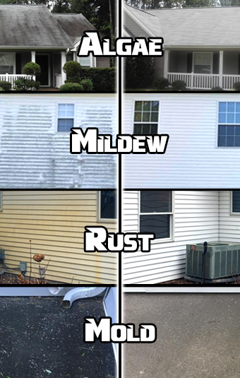 Algae, mildew, and mold are not only ugly, they can cause lots of damage! The airborne fungus eats the limestone in your shingles and causes decay to your exterior.